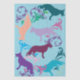 Beagle dog pattern, clear, minimalistic handmade drawing, retro colours in orange, white, green, red, black.