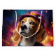 A playful Beagle dressed in a vibrant, whimsical costume against a glowing, magical backdrop. This enchanting design is perfect for animal lovers.