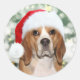 Beagle dog wears a Santa hat but it doesn't put him in the Christmas spirit quite yet dog lovers Christmas holiday sticker