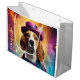 A playful Beagle dressed in a vibrant, whimsical costume against a glowing, magical backdrop. This enchanting design is perfect for animal lovers.