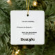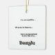 at christmass as a hanging decration for the chritmass tree.. its white porcline or cramic but very well made with added photo on one side.. also has a lovley red bag to keep it in.. execlent printed text in bold and black stands out well aganst the blue background of the photo.
