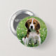 Adorable Beagle puppy is sitting in a field og green grass and clover. More wonderful Beagle dog gifts with this image in my store.