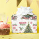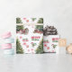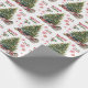 The repeated pattern on this Christmas wrapping paper includes an image of an adorable Beagle puppy looking out from a wicker basket. The basket is decorated with a bright red bow, and sits beside a Holiday tree. Stylised red and green text says MERRY CHRISTMAS", and your own signature is in two fields for you to customise. Other images included in the pattern include red decorative snowflakes, candy canes, and a peppermint lolly pop. Cute!