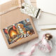 Beagle Sitting by Fireplace with Christmas Lights Rectangular Sticker