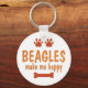 If you're a Beagle lover, you know they bring happiness to your life. Share your feelings with this fun design with paw prints, a bone, and the words Beagles make me happy.