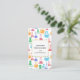 Business cards with a fun and colourful pattern. Research scientist vibe with beakers and flasks of different shapes and sizes in bright happy colours.