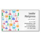 Magnetic business card with a fun and colourful pattern. Research scientist vibe with beakers and flasks of different shapes and sizes in bright happy colours.