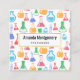 Business cards with a fun and colourful pattern. Research scientist vibe with beakers and flasks of different shapes and sizes in bright happy colours.