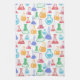 Kitchen towel with a fun and colourful pattern. Research scientist vibe with beakers and flasks of different shapes and sizes in bright happy colours.