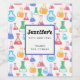 Bottle labels with a fun and colourful pattern. Research scientist vibe with beakers and flasks of different shapes and sizes in bright happy colours.
