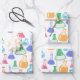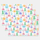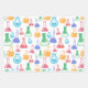Wrapping paper sheets with a fun and colourful pattern. Research scientist vibe with beakers and flasks of different shapes and sizes in bright happy colours.