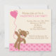 Customise this cute Valentine's Day invitation featuring a brown bear with a pink heart shaped balloon. © Cocoa Studio
