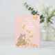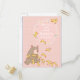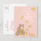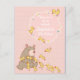Adorable and editable birthday invitation postcard design , perfect for a birthday with a cute bear holding little ducklings - flying ducklings on pink floral background!