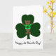 Say Happy St. Patrick's day with this cute bear standing in front of a large shamrock!