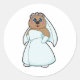 Bear as Bride with Wreath of Flowers Classic Round Sticker