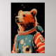 Bear Astronaut Poster, Bear Retro Print, Brown Poster