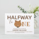 A baby half birthday party invitation with a bear, teddy bear, theme on kraft paper. It features a cute bear face as the first letter of the word “One”. Simply customise this invite, add it to your cart, and enjoy celebrating your baby’s first six months!