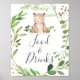 Give your guests a lovely direction with our bear food and drinks sign, featuring watercolor greenery eucalyptus garland and elegant handwritten style font.