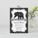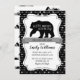 Bear baby shower invitation for boys in black and grey colours. Mountains and arrows themed baby shower invitation.