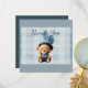 Create a unique baby shower thank you card featuring blue colours, and a casual chic teddy bear with gingham and balloons. Bear Jean Baby design on the front. Include your special message along with your name on the back. Flat card option. Use the template to personalise.