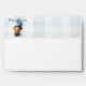 Create unique baby shower themed envelopes featuring blue colours, and a casual chic teddy bear with gingham and balloons. The back has your desired return mailing address. Bear Jean Baby design. Use the template to create special, personalised envelopes.