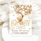 Step into a dreamy world with our adorable gender neutral baby shower invitation! 🌟 Neutral warm tones with fluffy clouds and shimmering gold glitter stars, a charming baby teddy bear holds onto elegant beige gold balloons. 🐻🎈 With minimalist design and heartwarming script typography, 💖 it's the perfect choice for a cute and magical celebration!