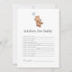 A sweet bear holding a blue balloon, perfect for your boy baby shower! Guests can write their wishes for the baby on this card. You can also change the colour of the balloon in this design.