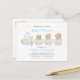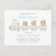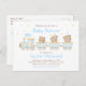 This cute and whimsical baby shower invitation features a watercolor train in pastel blue, yellow and brown with adorable baby bears. The text combines handwritten script and serif fonts for a stylish and modern look. This is perfect for a bear or train themed baby shower.