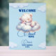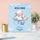 Introducing our enchanting Baby Shower Welcome Sign perfect for celebrating your little one's arrival with a sky-themed celebration filled with fluffy clouds, pastel blue hues, and heavenly decor. This delightful Welcome Sign features an adorable white baby bear peacefully sleeping on a soft cloud, creating a serene and dreamy atmosphere. The charming illustration is set against a backdrop of light blue skies and wispy clouds, evoking a sense of tranquillity and joy. Emblazoned with the heartwarming phrase "We are on Cloud Nine," this sticker perfectly captures the excitement and happiness of welcoming a new baby boy The elegant and playful font complements the whimsical design, making it a delightful keepsake for your guests.