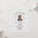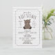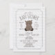 A baby shower invitation featuring an illustration of a baby bear. Personalise the text. Background is light grey wood inspired design.