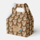 A cute brown favour box with a little cartoon bear cub pattern . Ideal for baby shower or toddler birthday with a woodland theme . Personalise it using the template .