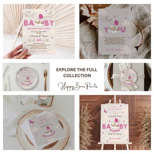 Sleeping Teddy Bear Baby Shower Pink Designed by Tsikona M