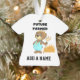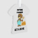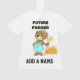 An adorable brown bear farmer with his pitchfork stands next to a pile of hay on our Future Farmer T-shirts, bibs, burp cloths, blankets, pacifiers, plates, and more!