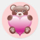 BEAR HOLDING PINK HEART CLASSIC ROUND STICKER