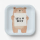 Bear holding sign cute blue baby shower paper plate