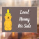This easy to customise window cling sign is perfect for selling your own honey or promoting your honey or beekeeping business. It features a simple style illustration of a bear-shaped squeeze bottle of honey with your own personalised text against a brown background. Simply fill in the template fields to add your own message or information to this sign.