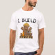 A teddy bear carpenter with a hard hat and tool box and text that reads "I Build" on carpenter t-shirts, tote bags, cards, stickers, and more.