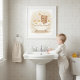 Cozy up your space with this warm watercolor bear-in-bathtub kids bathroom wall art featuring neutral beige tones and soft bubbles.