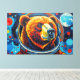 This striking artwork by Otis Porritt presents a bear in an astronaut helmet, its gaze direct and captivating. The animal's fur is rendered with a rich tapestry of textured strokes in warm oranges, yellows, and browns, creating a vibrant, almost impasto effect. Cool blues and purples define the snout, contrasting with the fiery tones of the fur. The reflective visor of the helmet frames the bear's face, while the background swirls with dynamic strokes of teal and deep blue, evoking a cosmic expanse. The digital medium masterfully captures a painterly aesthetic.
