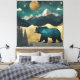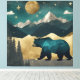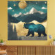 This painting features a beautiful depiction of a bear walking through the mountains at night. The bear is surrounded by trees and mountains, and the moon is shining brightly in the sky. The painting is sure to add a touch of whimsy and magic to any collection.