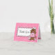 Our adorable custom baker note cards are perfect for children's thank you notes. Featuring a happy little bear wearing a chef's hat and pink plaid apron with cupcakes and cherries. Pink polka dotted background with cupcakes and cherries. Customise it with your own personal text. Little bear is moveable and resizable. Coordinated labels, party invitations, postage, T-shirts and gifts also available. PinkInkArt original!