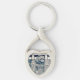 Metal Keychain with a photo of a bear sculpture guarding a building.