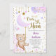 Bear Over The Moon Lilac Baby Shower Invitation,
