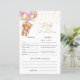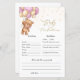 Baby Advice and Prediction card. This design features a friendly Teddy Bear with pink and cream balloons. Text "Baby Predictions" is written in modern calligraphy font. Add your predictions about the new baby and leave your best wishes.