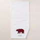 Pretty rustic personalised bath towel set with a festive plaid bear and a handwriting font. Fun gift for a holiday season.