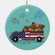 Bear Riding Truck American Flag Fireworks Funny Ceramic Tree Decoration