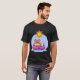 I give wanted to give this a 4 instead of a 5 because these Basic DARK T0shirts run unexpectedly SLIM or Narrow. Which is great if you do not have a potbelly, but I have a paunch. It isn't the shirt's fault that I've got a beer belly. The design and shirt itself is a quality cotton shirt. The color is more of a deep purple, but still a very pretty color. The Basic DARK T-shirts run a bit SLIMMER than the Basic Ts. The neck is a fraction narrower (or seems to be narrower) also. I'm a paunchy middle-aged woman and my neck is 12 inches (31cm) thick and the neckline fell about the same as in the photo of the man, and I had the desire to tug it a bit. So if you're a thick necked man or like loose shirts, be aware these are slimmer shirts. Once I get rid of my lockdown paunch it'll look great. The shirt washed well in cold water with no apparent bleeding. We don't have a dryer, so it hung dry. Did not shrink. Love the colors and the design. The design looks smaller on my shirt than it does on the model on-line. But still, it looks good on the shirt. The printing looks as it does on the model, just the size seems fractionally smaller. Washed garment in cold water, hung dry and design appeared unaffected.