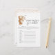 Create some fun at a baby shower with this 'Bear & The Bee' boho themed Word Scramble game! Design features, rose gold confetti sprinkles, an illustration of a watercolor boho bear, holding pampas grass, peach delicate flowers, gazing at a bumble bee. The answers are available on the reverse. For more advanced customisation of this design, simply select the "Customise further" link after personalising!