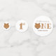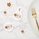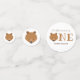 Our bear is turning one first baby birthday table confetti. This confetti is white and brown with the word "One" in large letters with a bear face illustration as the first letter of the word, along with more bear faces and a “1st”. Simply customise it, add it to your cart, and happy birthday to your wonderful baby!