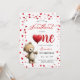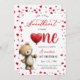 Bear with balloon Valentines 1st girl Birthday Invitation